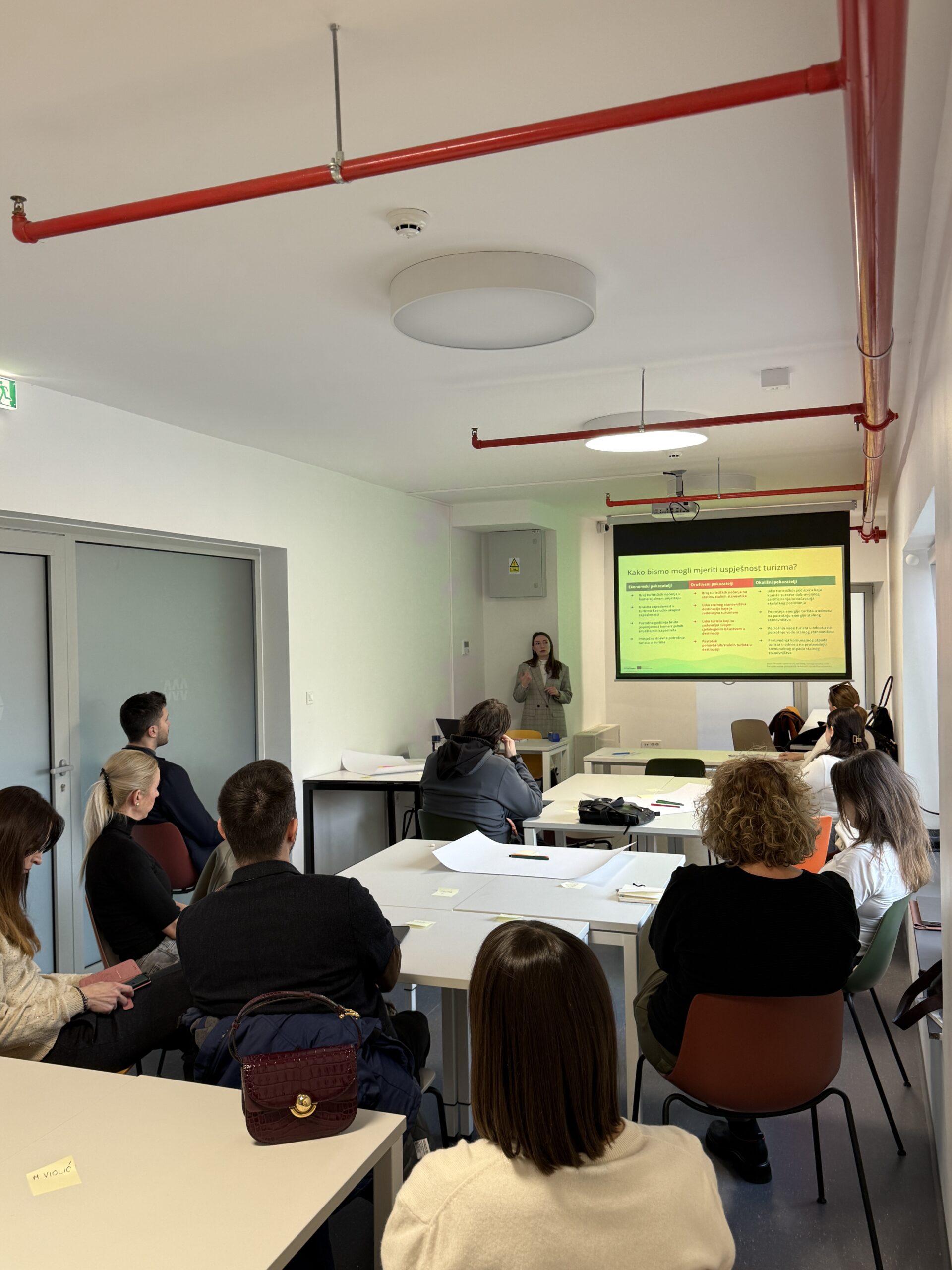 U okviru prvog radnog dana, aktivnosti su bile strukturirane u više tematskih cjelina, prilagođenih različitim skupinama dionika. Provedene su odvojene sesije usmjerene na upoznavanje s projektom, formiranje mreže dionika, identifikaciju lokalnih izazova povezanih s turizmom te jačanje kapaciteta sudionika kroz upoznavanje s konceptima održivih destinacija, ekonomije posjetitelja i aktualnih trendova u održivom turizmu.