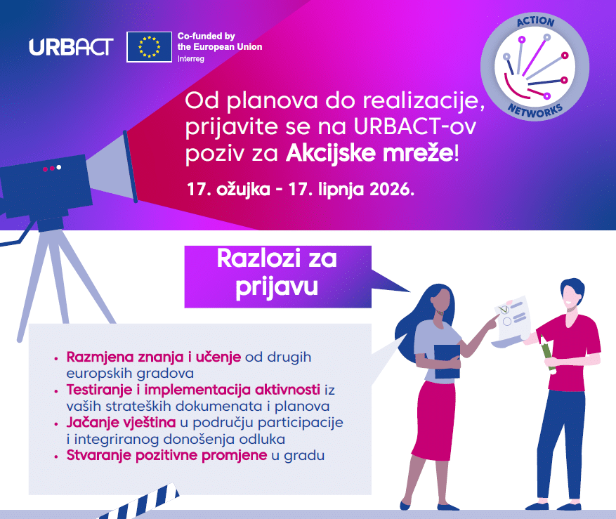 URBACT poziv za akcijske mreže otvoren je od 17. ožujka do 17. lipnja 2026. godine, a namijenjen je gradovima koji žele razvijati i provoditi konkretne aktivnosti temeljene na svojim lokalnim strategijama.
